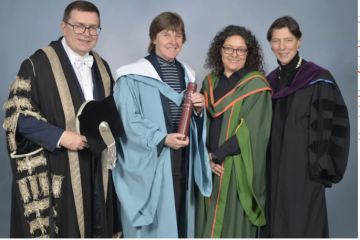 Alison (second from left), Professor of Probability in Oxford and President of the recently created Academy for the Mathematical Sciences, has been recognised with a Doctor of Science (DSc) from Heriot-Watt University.