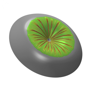 Wrinkling is caused by compressive forces within the shell (just as a piece of paper buckles when you compress it at its edges). The key insight is that wrinkling allows the shell to relax the compressive stress so that there is essentially no compression in the direction perpendicular to the wrinkles, and a very high tension along the wrinkles. This change in the stress causes the shell to adopt a new kind of shape, that is qualitatively different to mirror buckling. To determine the energetic cost of this new shape requires a detailed calculation of how wrinkles behave - we find that the wrinkle pattern is intricate, changing spatially (see picture) and also evolving as the degree of poking changes. However, we also show that despite this, the energetic cost of the wrinkling is relatively small, and so this wrinkly shape is an approximate isometry (a ‘ wrinkly isometry’).