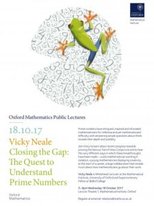 Vicky Neale is Whitehead Lecturer at the Mathematical Institute, University of Oxford and Supernumerary Fellow at Balliol College.
