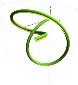 The goal was to find configurations within this solution space that satisfy the conditions of being contact-free, mechanically stable, and knotted. This was a bit like finding a needle in a haystack, but after applying some numerical tricks they showed that in fact such configurations exist as theoretical solutions of the full nonlinear 18D system; they then categorised the space of 'good knots' in terms of the 3 experimental measures: end-rotation, end-displacement, and end-shift. The numerical study was complemented with an asymptotic analysis of a perturbed 'double ring' solution; the idea being that knotted solutions can be found in the neighbourhood of a planar circle that overlaps itself exactly once.