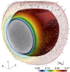 Other applications of a similar framework are encountered in quite different scenarios, for instance in the modelling of lithium ion batteries. Oxford visiting student Bryan Gomez (from Concepcion, Chile, co-supervised by Ruiz Baier and Gabriel Gatica) is currently looking at the fixed-point solvability and regularity of weak solutions, as well as the construction and analysis of finite element methods tailored for this kind of coupled problems (see also a different perspective focusing on homogenisation and asymptotic analysis, carried out by Oxford Mathematicians Jon Chapman, Alain Goriely, and Colin Please).