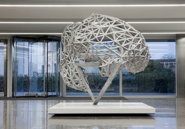 As you enter the main entrance lobby of the Andrew Wiles Building you are greeeted by Axiom. Created by artist Mat Chivers, the sculpture is the winner of the Mathematical Institute's Sculpture Competition. The competition invited artists to propose, and eventually create, a substantial and artistically significant sculpture to be placed in the main entrance lobby. We would encourage you all to visit and meanwhile allow Mat to explain the work and its construction.
