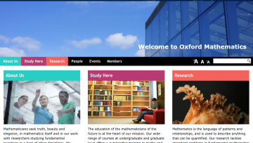 The Mathematical Institute is pleased to announce the launch of its new website. The new website has been reworked from the ground up to be modern, flexible, engaging and inviting to current and future mathematicians and friends. A collaboration with William Joseph produced an initial design which was then developed and implemented in-house and, being based on modern technologies, is compatible with mobile devices.