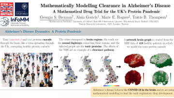 Oxford Mathematician Georgia Brennan has won a silver medal in the Mathematical Sciences category at STEM for Britain 2021 for her poster (extract in the image) on 'Mathematically Modelling Clearance in Alzheimer’s Disease: A Mathematical Drug Trial for the UK’s Protein Pandemic'.